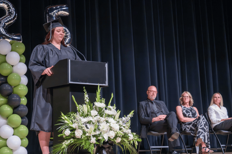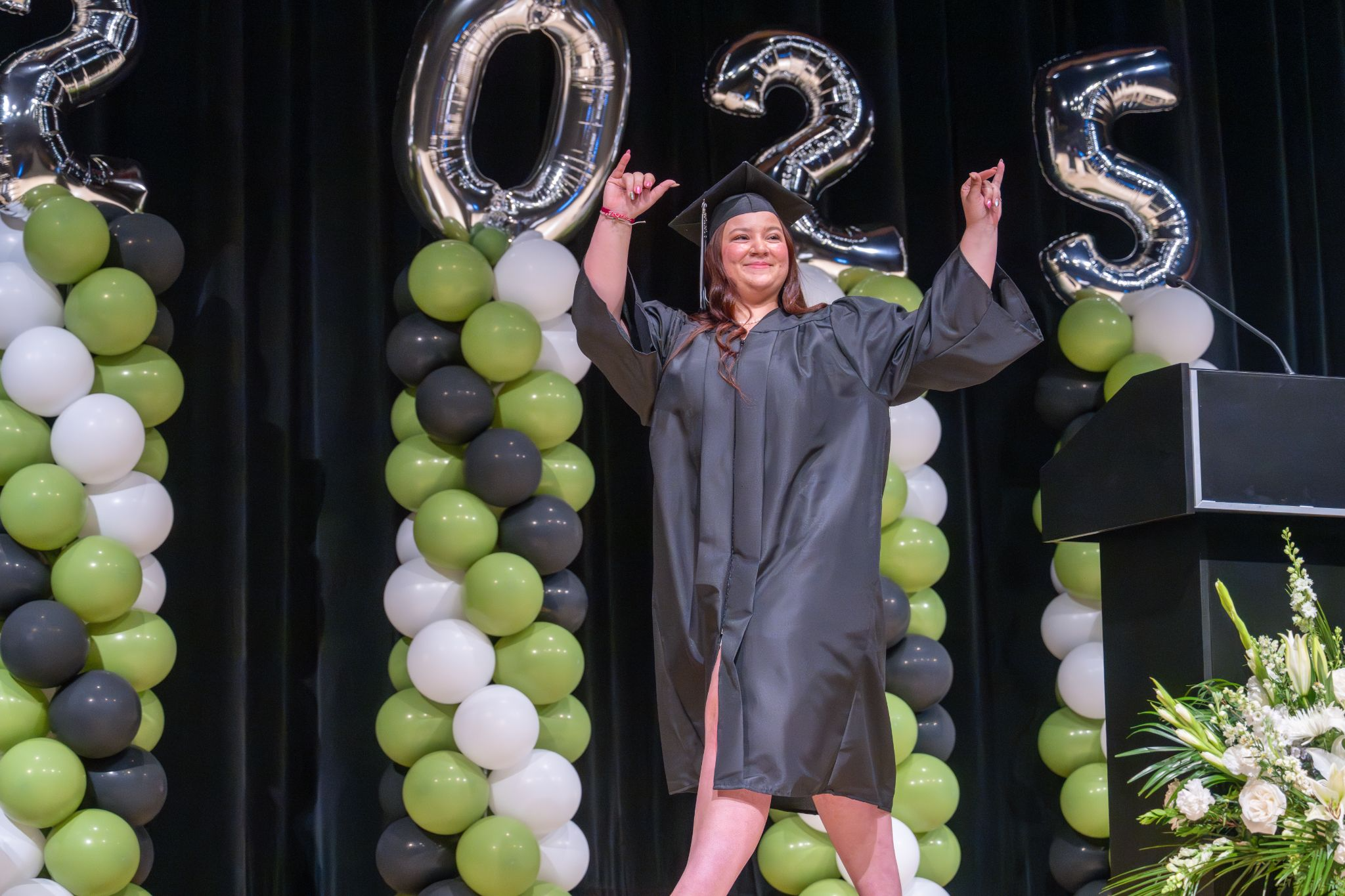 Mary confidently walks the stage, ready to share her story and inspire her fellow graduates.